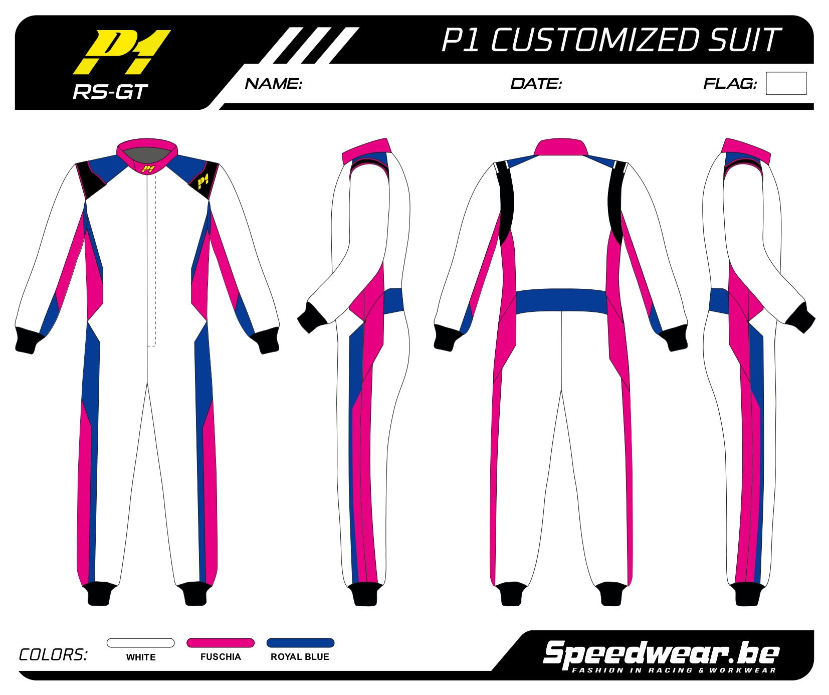 P1 FIA Race overall – Volledig op maat en in eigen design kan je een racepak laten maken in het design en kleur(en) dat jij graag wenst!