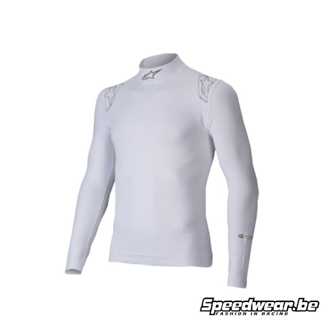 Alpinestars ZX EVO V3 brandwerende top is een essentieel kledingstuk voor elke race-piloot. Nomex kledij is niet meer weg te denken als het gaat over de bescherming van de piloot. Alpinestars verbeterde weer maar eens zijn nomex onderkledij lijn. Dit bestaat uit broek, top en balaclava (helmmuts). De vernieuwende, ultralichte, ademende en zeer rekbare jaquard mesh stof zorgt voor ideaal draagcomfort voor de piloot. Deze Alpinestars ZX EVO V3 brandwerende topis zowel gecertificeerd aan de laatste FIA Homologatie 8856-2018 als SFI 3.3.