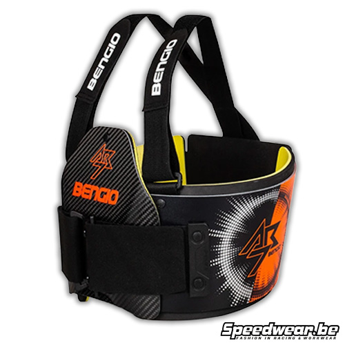 Dankzij het nieuwe sluitsysteem, ontworpen en geregistreerd door BENGIO, kan de bestuurder de ribbeschermer op een eenvoudige, snelle en veilige manier dragen en afstellen, waarbij hij er zeker van is dat de beschermende gebieden op hun plaats blijven tijdens de rijsessie in overeenstemming met de FIA-veiligheidsnorm.