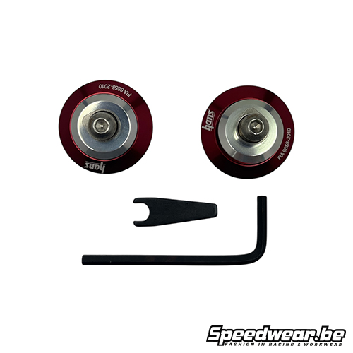 Schuberth FHR Clips – Rode kleur: Veiligheidsclips voor bevestiging van het Frontal Head Restraint (FHR)-systeem, ontworpen voor Schuberth-helmen. Duurzaam en betrouwbaar, met een opvallende rode kleur.