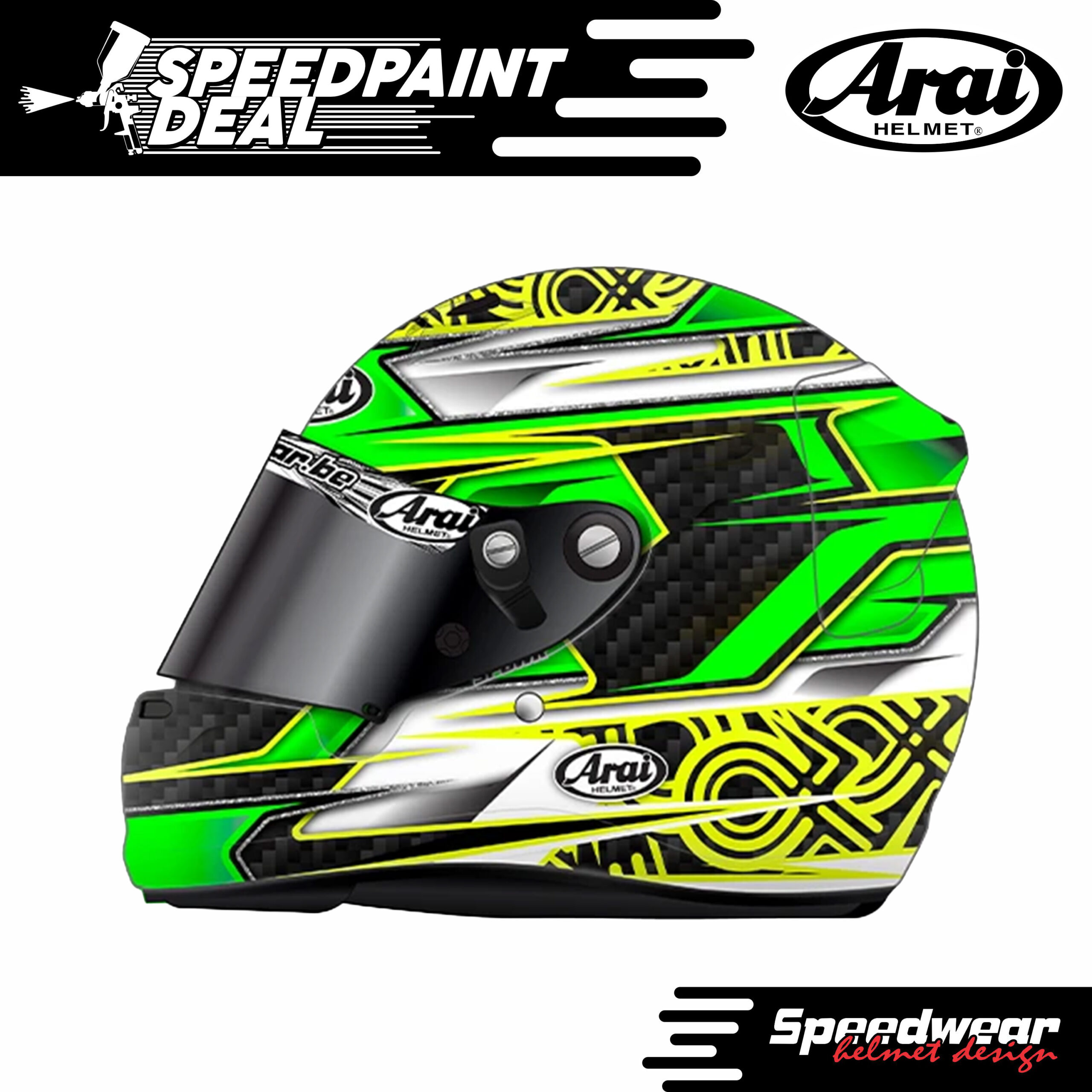 SpeedPaint Deal Spa Francorchamps omvat design, helmspuiting en Arai of Schuberth helm. Wil je snel een helm hebben met een leuke uitstraling dan is de SpeedPaint Deal CAMPILLOS ideaal voor je!